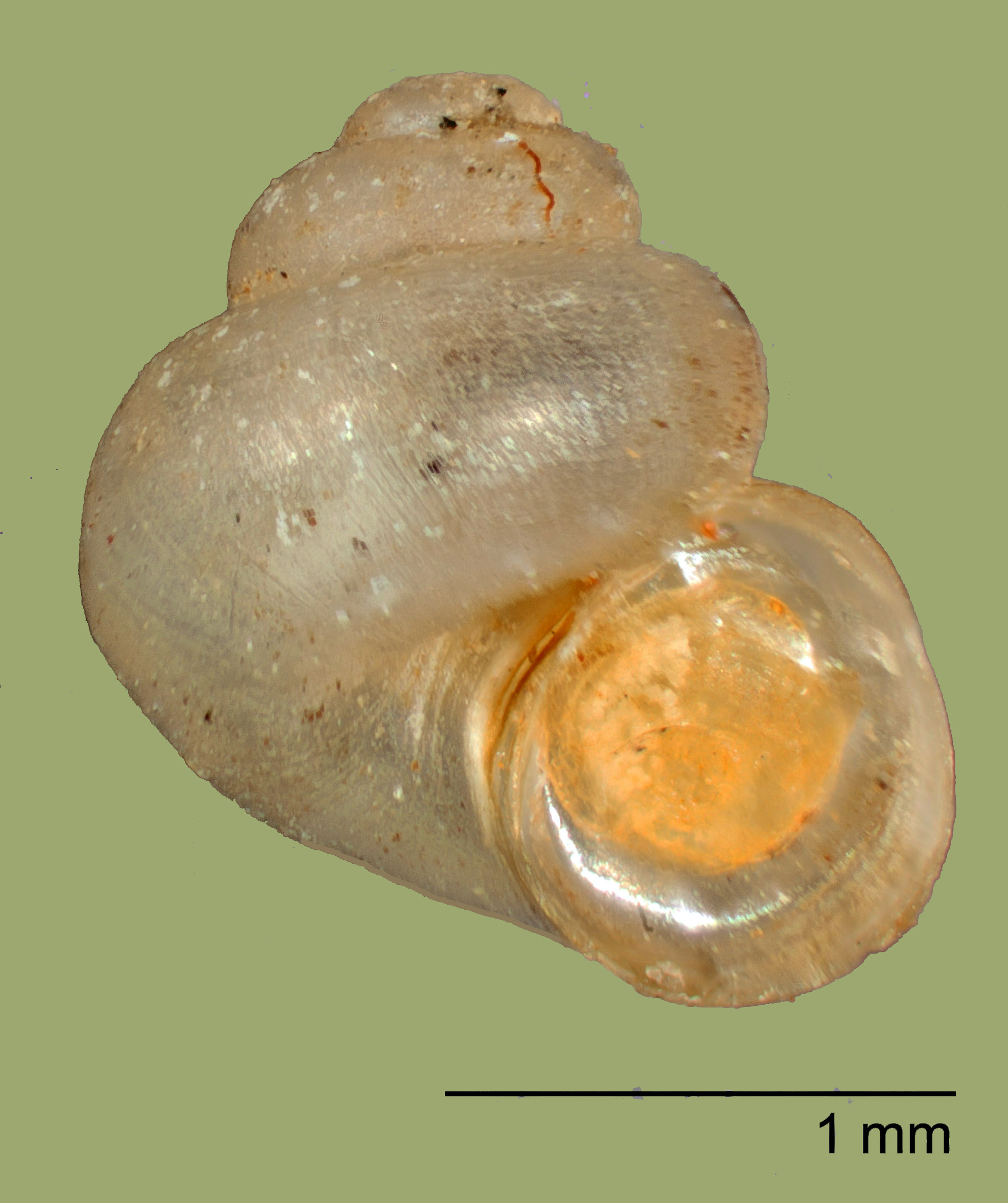 Hubricht (1971) described the animal as white and blind, being a penis “simple, tapering to a point, without appendages.” The absence of a second, accessory lobe on the penis (as characteristic of Amnicola) led him to propose a new genus, Antrobia. The 1.8 mm holotype shell (FMNH 164171) is figured above, courtesy of the Field Museum of Natural History.